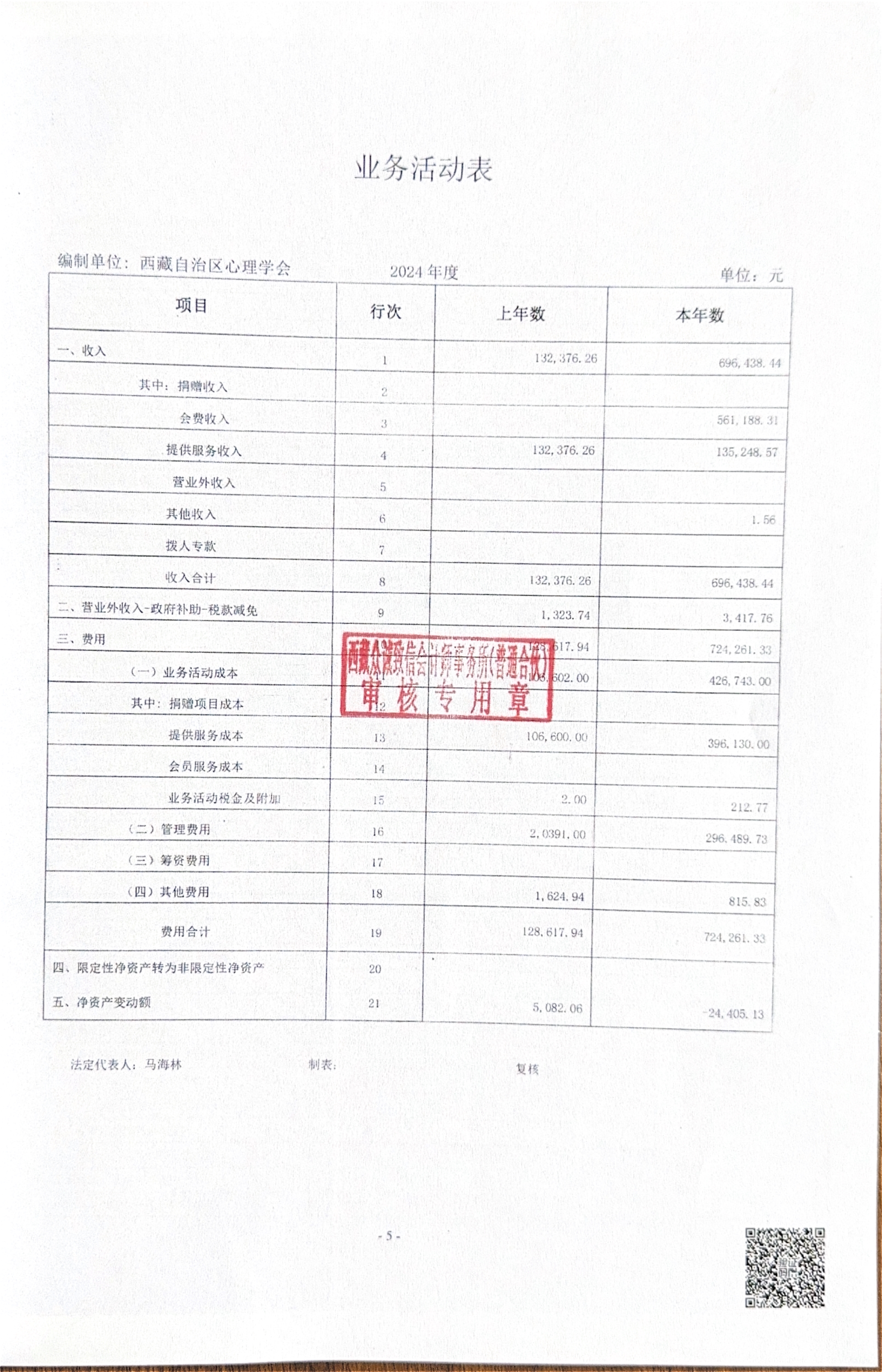 西藏自治区心理学会2024年审计报告